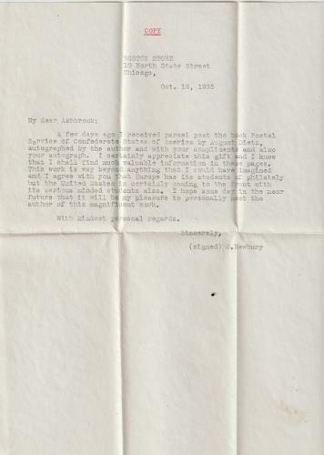 A Letter from Stanley Ashbrook To the great August Dietz about his book on Confederate covers He wrote. He plated all of the U.S. earliest stamps. I owned this letter sent it to Wikipedia and Auctioned it off. Stanley Bryan Ashbrook - Wikipedia[font="Open Sans", "Helvetica Neue", Helvetica, Arial, sans-serif]