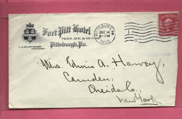 * Accompanied by notarized affidavit from Randolph Prelat, the addressee, dated June 21, 1939, attesting that: ...the certain United States Postage Stamp described on Page 4 of catalogue of Edwin P. Seebohm (68th Public Auction) as Lot No. 16 has not been tampered with and has been in my possession since it was originally mailed from Indianapolis, Indiana, in 1908