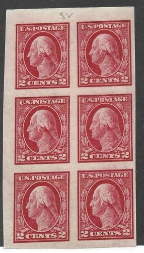 Scott 409 imperf block of 6 Jumbo og