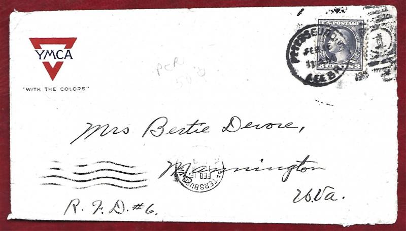 There is a machine cancel with a single ring die and six wavy lines. Inside the ring it reads, JERSEY CITY, N.J. / MERRITT BRANCH. Inside, JUL 30 / 8AM / 1918. The wavy lines obliterated two 1c Washington stamps.