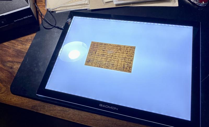 And, here are the same stamps as they appear on a light table. I photographed the 12pf stamp from the back just to illustrate how transparent they are. The image is as clear from the back as it is from the front. (The item on top of the 6pf stamp is just the end of my stamp tongs. The stamps have a tendency to curl so it is holding it down).
