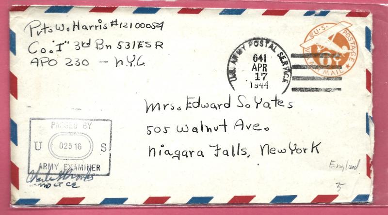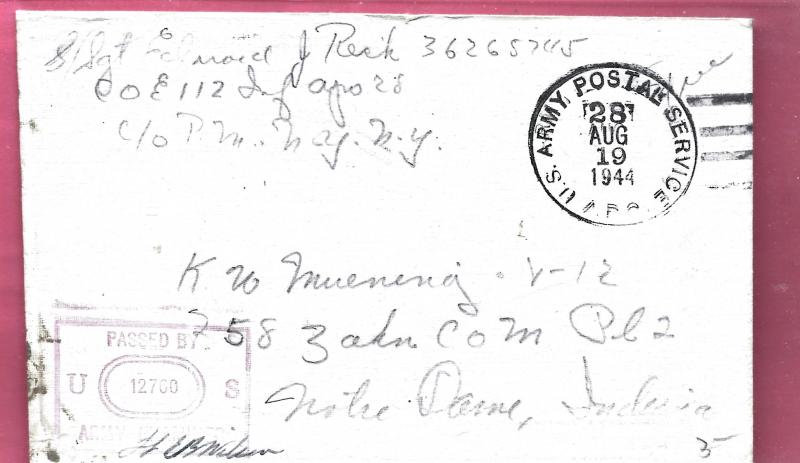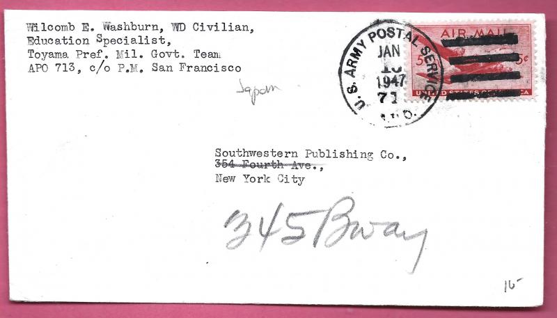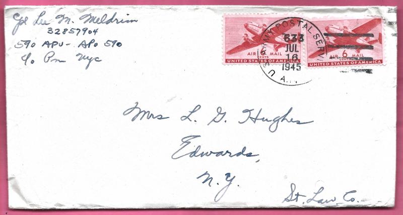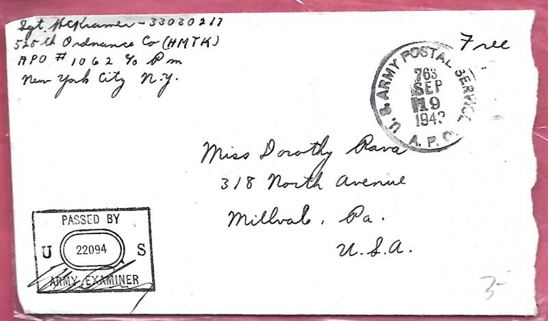 This ratty cover With postage due of 6 cents sent July 24 from APO#? covered by stamps, it must have been over weight So Richmond required another 6 cents due July 28 1943, The one cent is J 80 and the 5 cent is J 83. Cover type torn off.