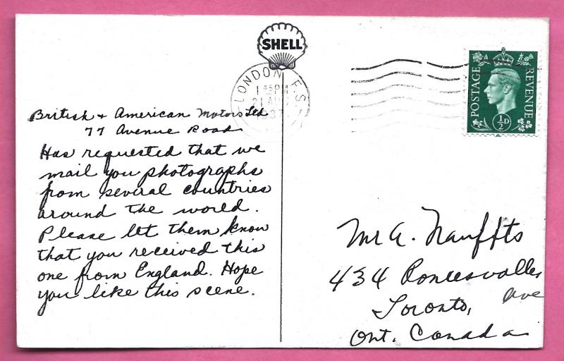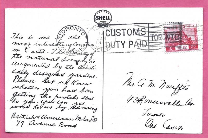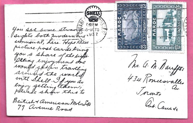A interesting scarce post card sent from Bagdad to Toronto , With the purpose to save and  show the stamp and the two cancels to British & American Motors LTD sent Dec 12 1937 and arrived 26 Jan 1938