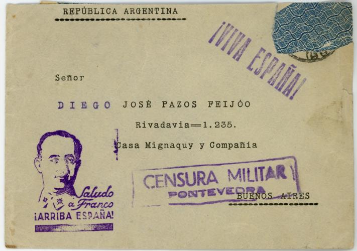 In short, this appears to be a cover sent in or about 1937 during the Spanish Civil War by surface mail, using a security envelope, from a Nationalist sender in Pontevedra (Galicia) to a correspond in Buenos Aires, Argentina.